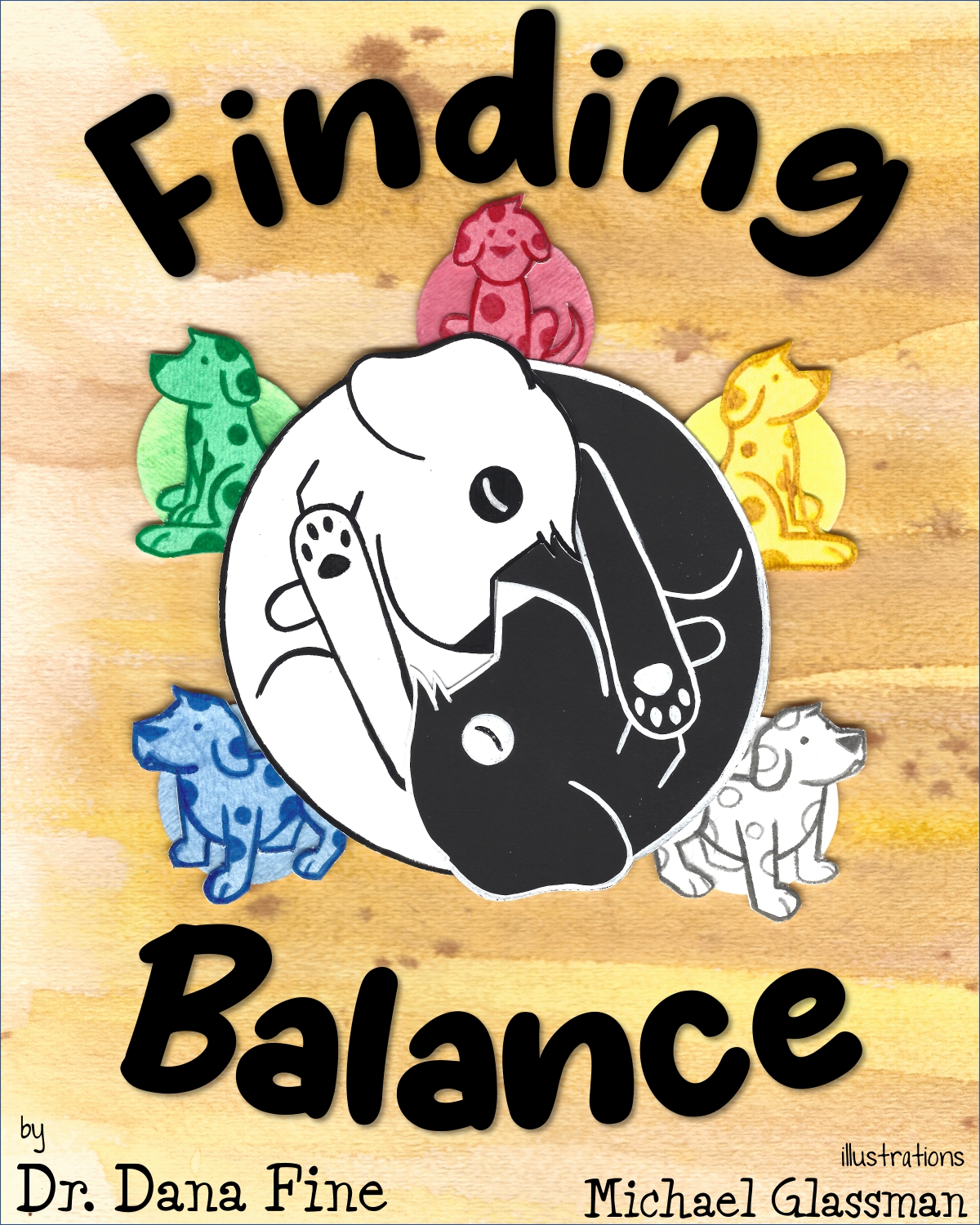 In the book Finding Balance Yin and Yang are twin dogs trying to find their baby brother Balance. Each illustration will contain the yin and yang symbol through the dogs. Yin is a black dog with a white spot and Yang is a white dog with a black dot. Their search takes you on an exploration of the five elements (fire, earth, metal, water, wood). Each element helps Yin and Yang work together to find Balance. To emphasize the importance of each element, the dogs will have adventures by fire (red), on the earth (yellow), with metal (white), by the water (blue), and in the woods (green). The 5 elements are represented by different emotions the dogs will experience throughout the book; fire is order or overjoy, earth is trust and worry, metal is organization, water is pensiveness and fear and wood is indecision and anger. In the end, the dogs will work together to center their qi pronounced “chi.” Qi is our life source. By balancing yin and yang as well as the five elements we can all center our qi. Our hope is that through this book parents and children can learn to center themselves through being outside and using breathing and meditation.